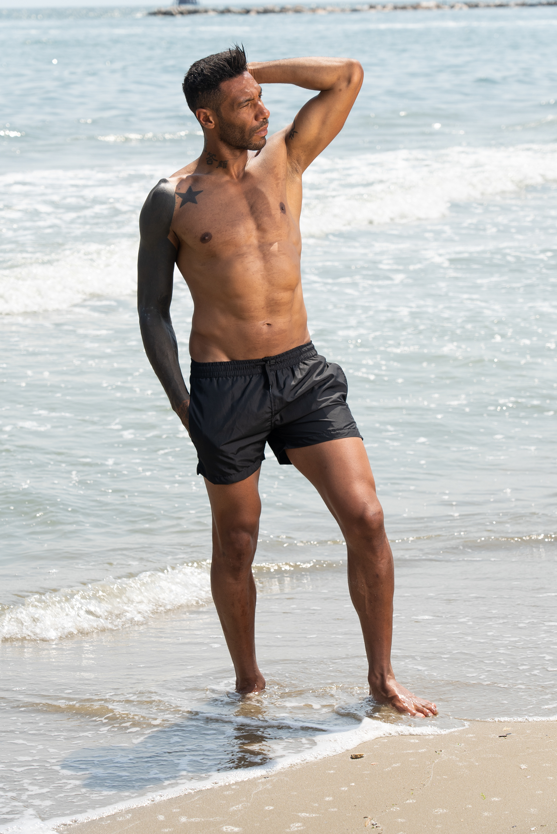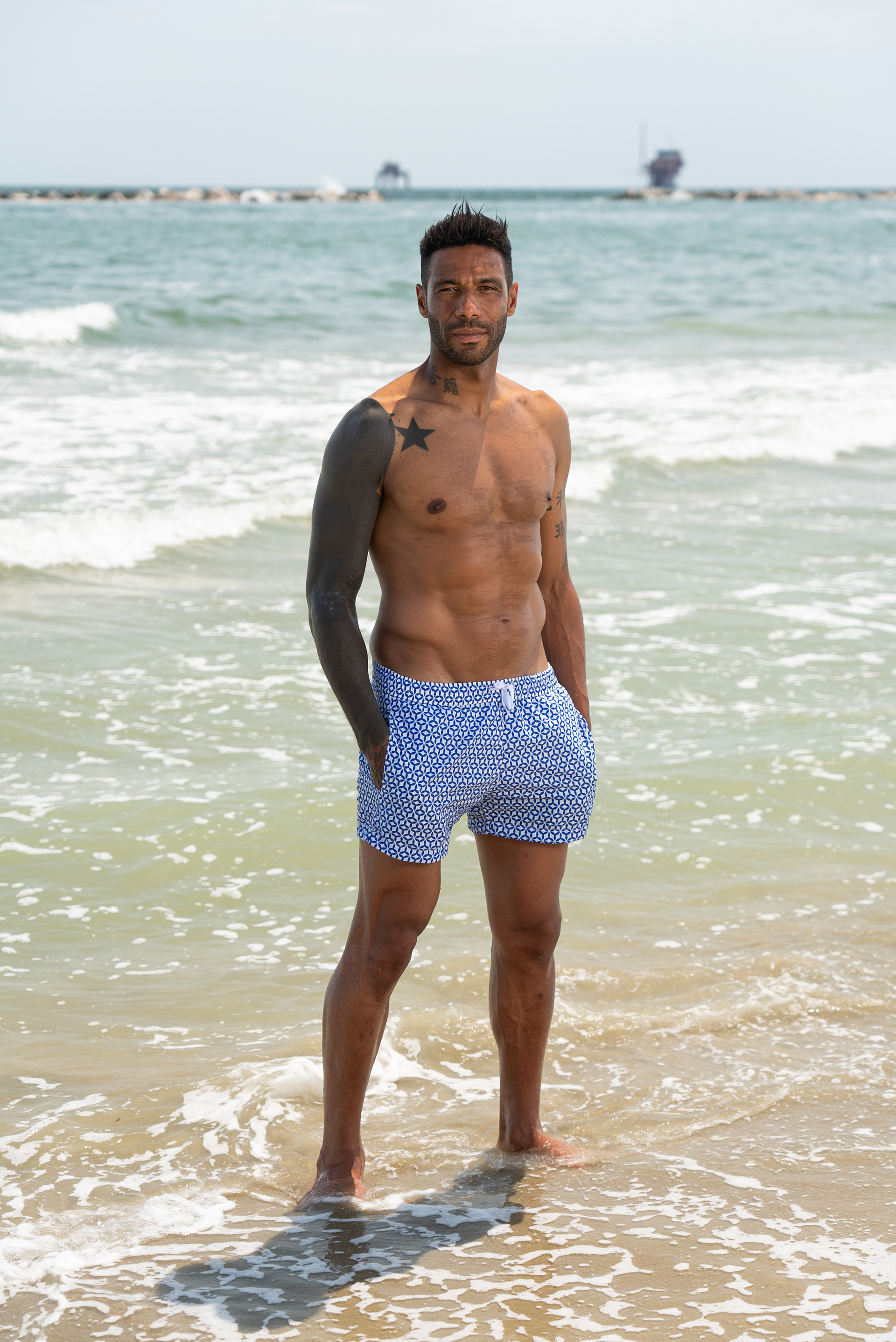 Shooting fotografico per brand di abbigliamento specializzato in costumi da bagno maschili e femminili a Marina di Ravenna.